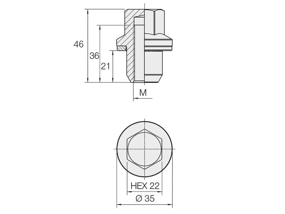 Matice M12x1,5 kužel typ D6 pro většinu aftermarketových litých kol na trhu s nejběžnějším šestihranem na klíč 19 mm a pro mnoho originálních litých kol značek Dodge, Hummer, Chevrolet, Chrysler, Jaguar, Jeep, Opel, Ssang yong a další. Celková výška 34 mm.